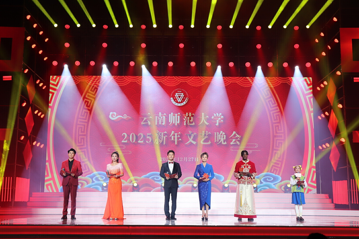 12月27日晚,云南师范大学2025新年文艺晚会在其乐融融的氛围中缓缓拉开序幕。这是一次思政与艺术的融合碰撞,一场视觉与听觉的艺术享受,更是一堂老中青传承、大中小一体、中外学子齐聚的大思政课。