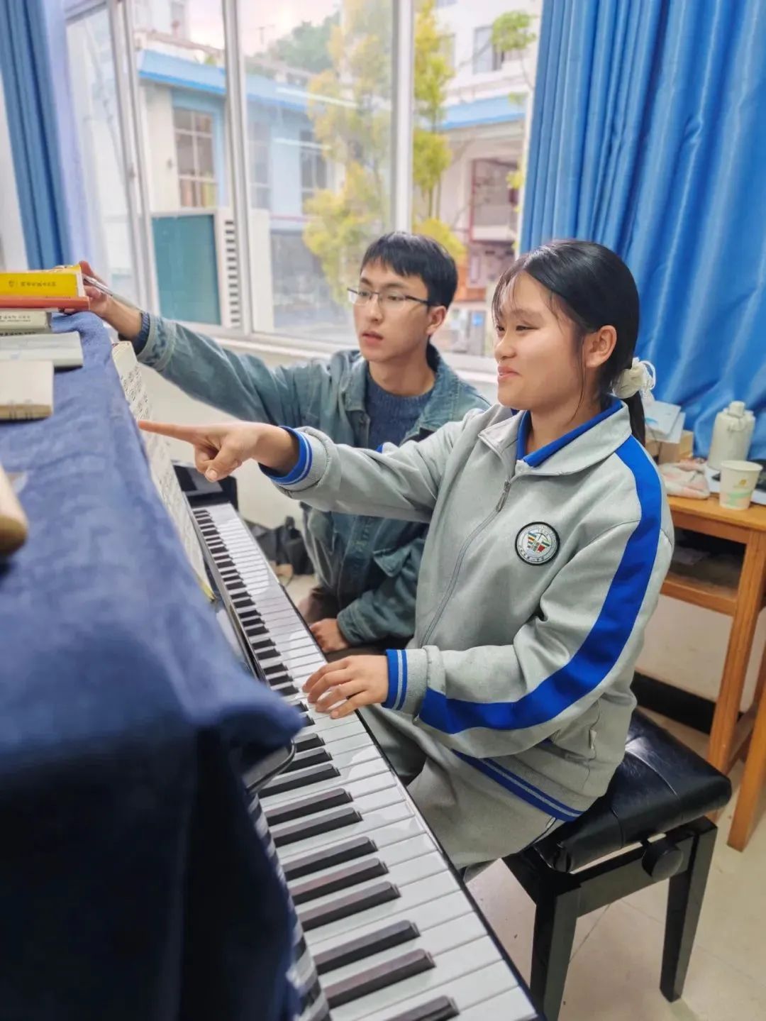 今年三月开始,每天午间12:50,云南师范大学艺术学院学生朱加李都会准时为泸水一中艺考生辅导音乐课程。他手持节拍器,带领学生分辨音高、音值、音色与音量的差异,这样的场景将持续一整个学期。
