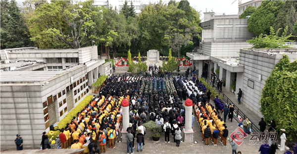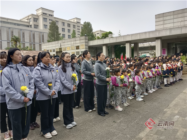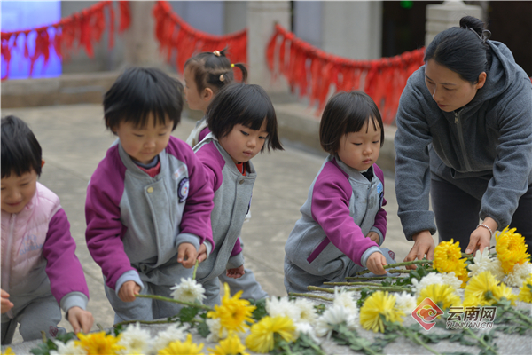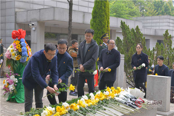 伴随《献花曲》,昆明警备区、昆明市退役军人事务局、昆明铁路公安局、云南师范大学幼儿园、昆明市五华区莲华小学、西南联大博物馆等多个学校、单位的学生、职工依次缓步上前,瞻仰烈士墓并向烈士敬献鲜花。