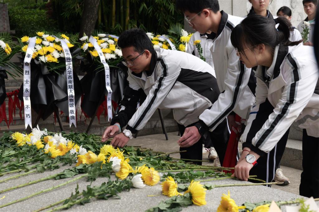 今年是中国人民抗日战争暨世界反法西斯战争胜利80周年。据悉,为缅怀革命先烈,弘扬爱国主义精神,在清明节到来之际,自3月下旬以来,位于云南师范大学校园内的西南联大旧址迎来了祭扫热潮,来自部队、党政机关、企事业单位、大中小学等3万余人次纷纷来到这里举行悼念仪式。西南联大博物馆专职讲解员王齐表示,西南联大博物馆持续在清明、五四、“一二·一”等重要时间节点组织开展主题教育活动和纪念活动,引导人们牢记历史,缅怀先烈,激发爱国热情、凝聚奋进力量。