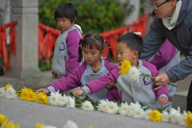 昆明警备区、昆明市退役军人事务局、昆明铁路公安局,以及云南师范大学幼儿园、昆明市五华区莲华小学、西南联大博物馆等多家单位和学校的学生、职工,依次迈着沉重的步伐,缓缓走到烈士墓前,瞻仰烈士墓并献上鲜花。一朵朵鲜花,寄托着人们对先烈们的无尽追思与崇高敬意。