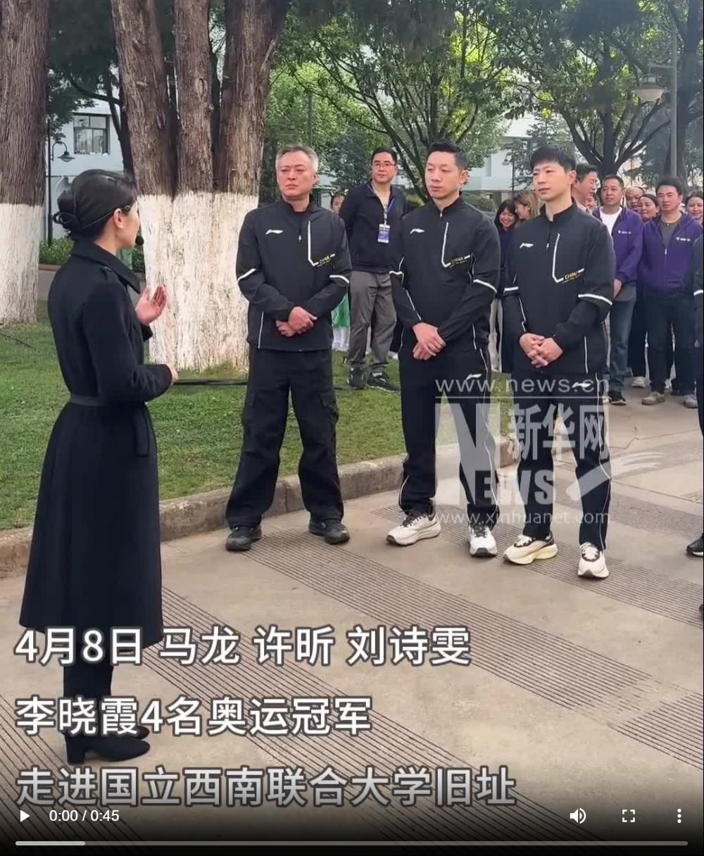 4月8日,“西南联大烽火志·奥运冠军拼搏魂”——国球奥运冠军走进云南师范大学活动在昆明举办。马龙、许昕、刘诗雯、李晓霞4名乒乓球运动员来到国立西南联合大学旧址,参观西南联大博物馆,了解该校在战火中培养出一批批爱国人才的办学历史。活动现场,云南师范大学师生为他们演唱了《西南联大校歌》,4名运动员在歌声中感悟这段历史。(完)