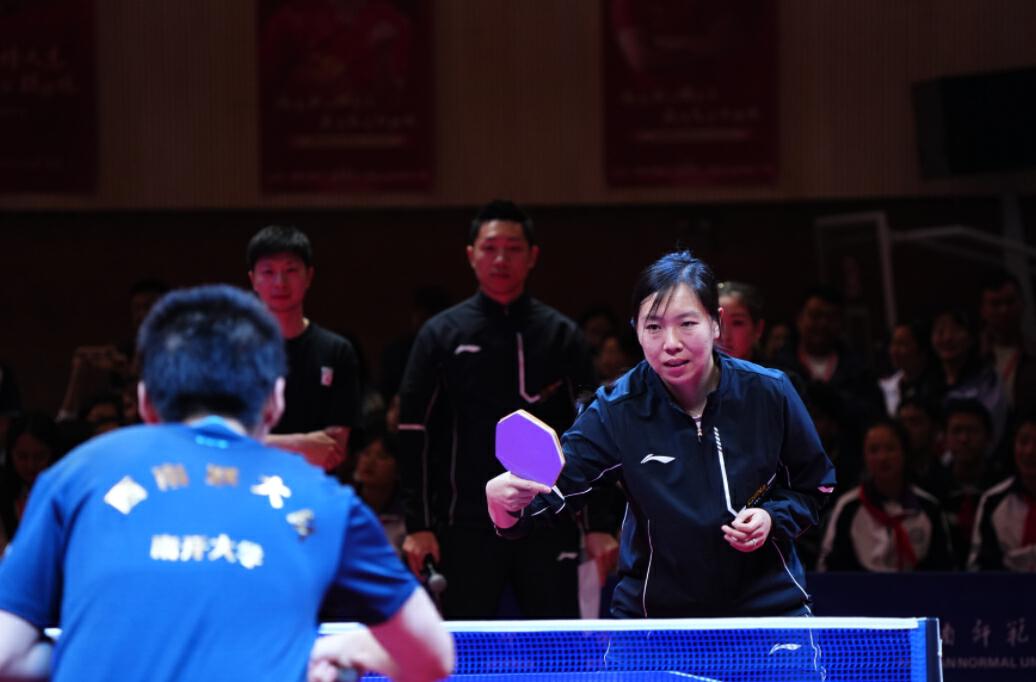 随后,奥运冠军们还与清华、北大、南开、师大高校联队展开交流赛,与乒乓球爱好者进行了交流赛。对决中,观众们热情洋溢,稚嫩的声音此起彼伏:“别放水,打他!”充满激情的呐喊声,让整个赛场充满了欢乐与活力。孩子们的热情,也让奥运冠军们仿佛回到了童年,享受着乒乓球带来的纯粹快乐。