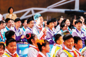 云南师范大学附属小学的学生在活动现场向马龙提问。