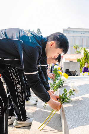 马龙在云南师范大学西南联大旧址为“一二·一”运动四烈士墓敬献鲜花。