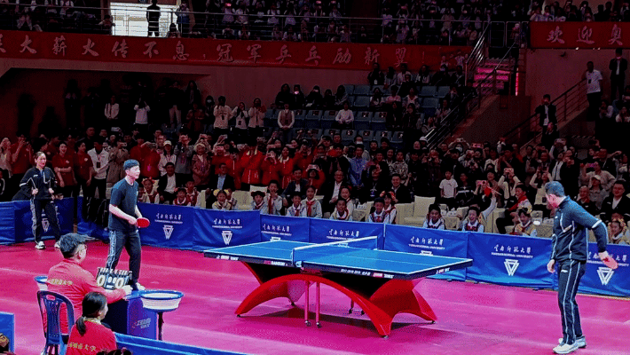 奥运冠军与大家开始了乒乓球赛