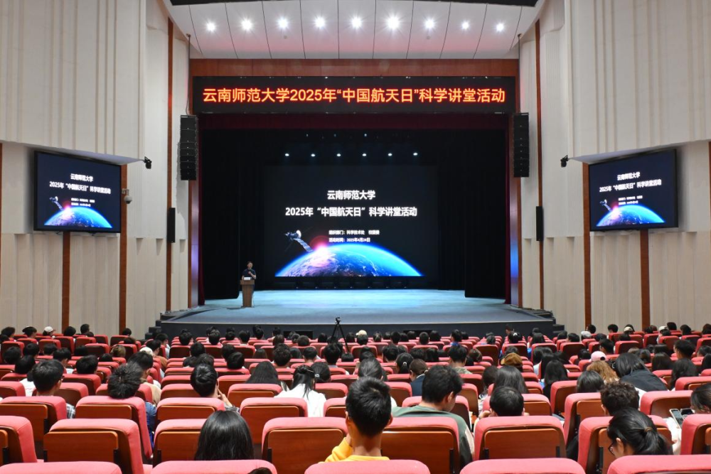 4月24日,第十个“中国航天日”科学讲堂活动在云南师范大学呈贡校区举办,全校400余名师生参加活动。