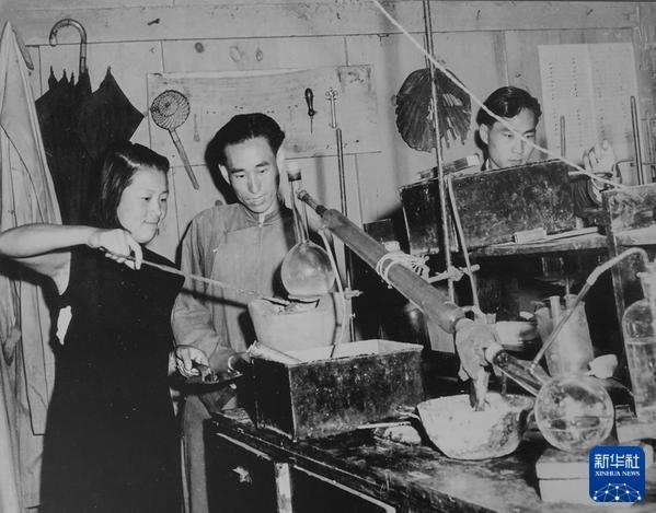 西南联大学生在做实验(翻拍照片)。