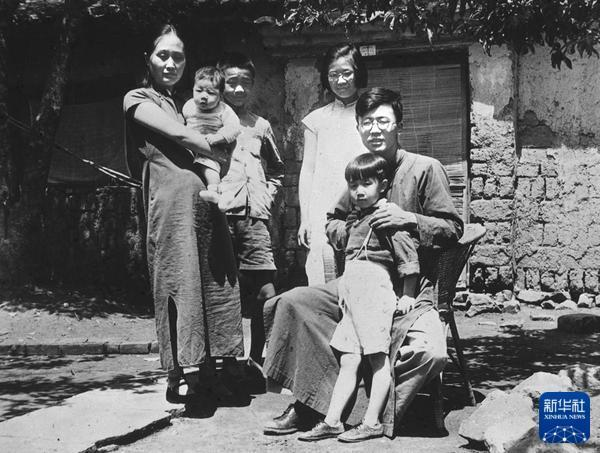 华罗庚和家人在昆明的住宅前留影。新华社