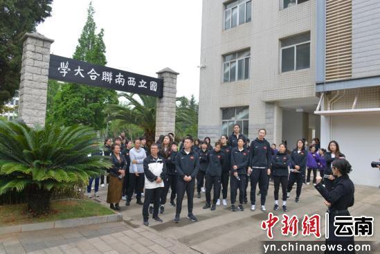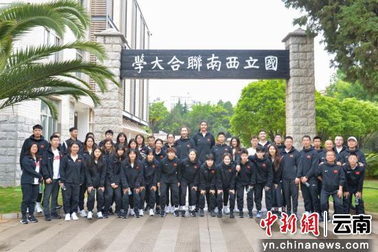 中国女子篮球队到云南师范大学西南联大旧址参观学习。云南师范大学 供图