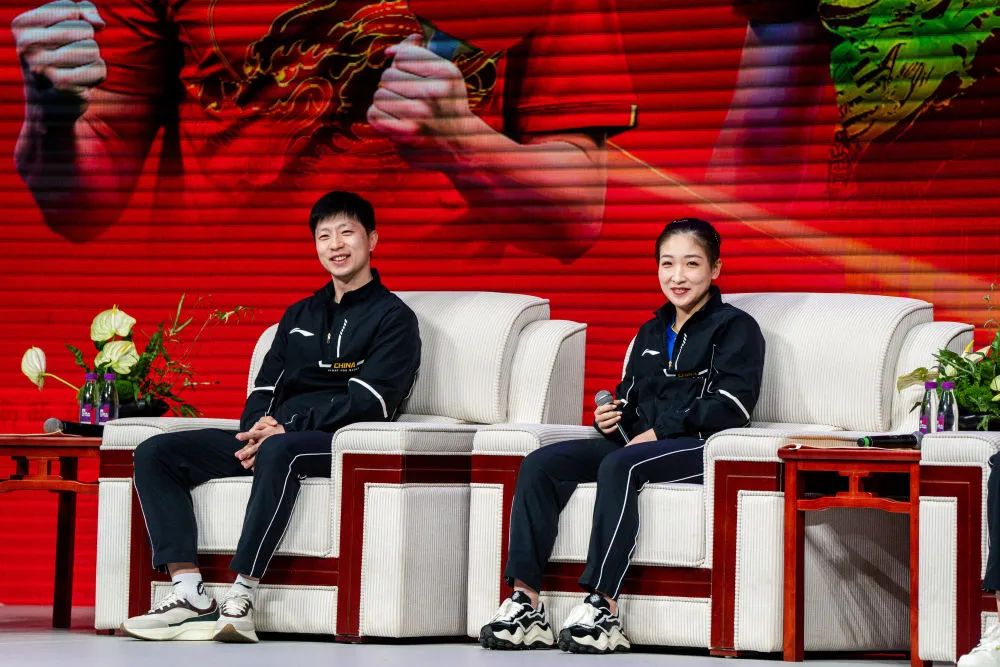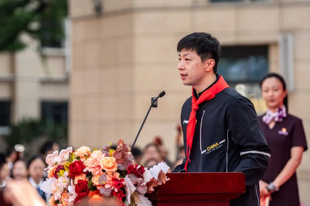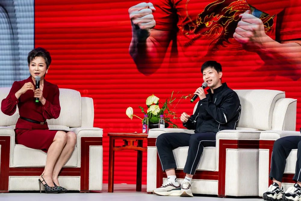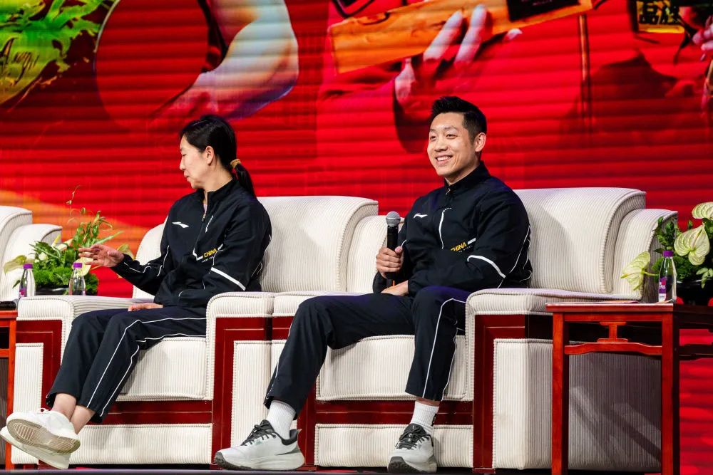 马龙向孩子们分享了作为国乒队员的感受“我曾无数次面对伤病、失败、困惑和压力是什么让我坚持到现在?那就是爱国情怀、拼搏精神以及对冠军的追求”