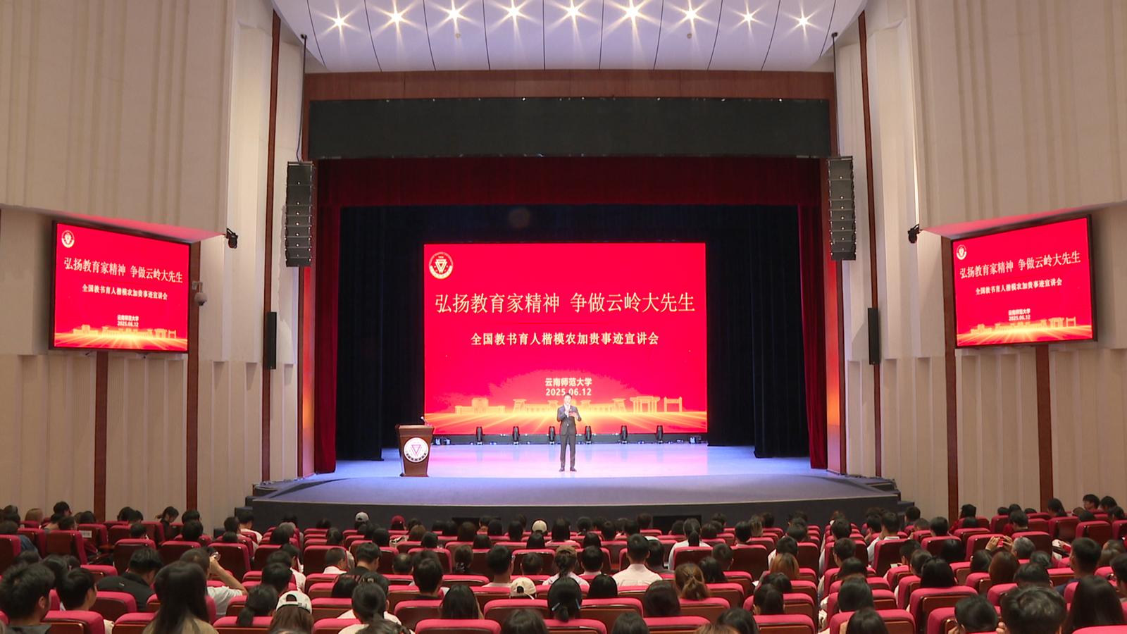 6月12日,“弘扬教育家精神 争做云岭大先生”全国教书育人楷模农加贵事迹宣讲会在云南师范大学艺术学院演播厅举行。