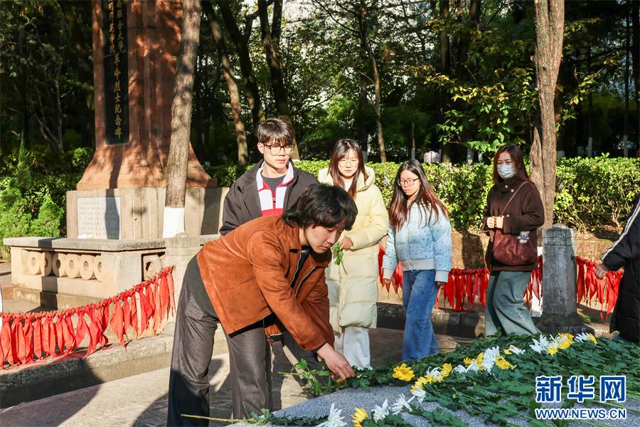 学生向四烈士墓敬献鲜花(12月1日摄)。新华网发(杨婉芝摄)
